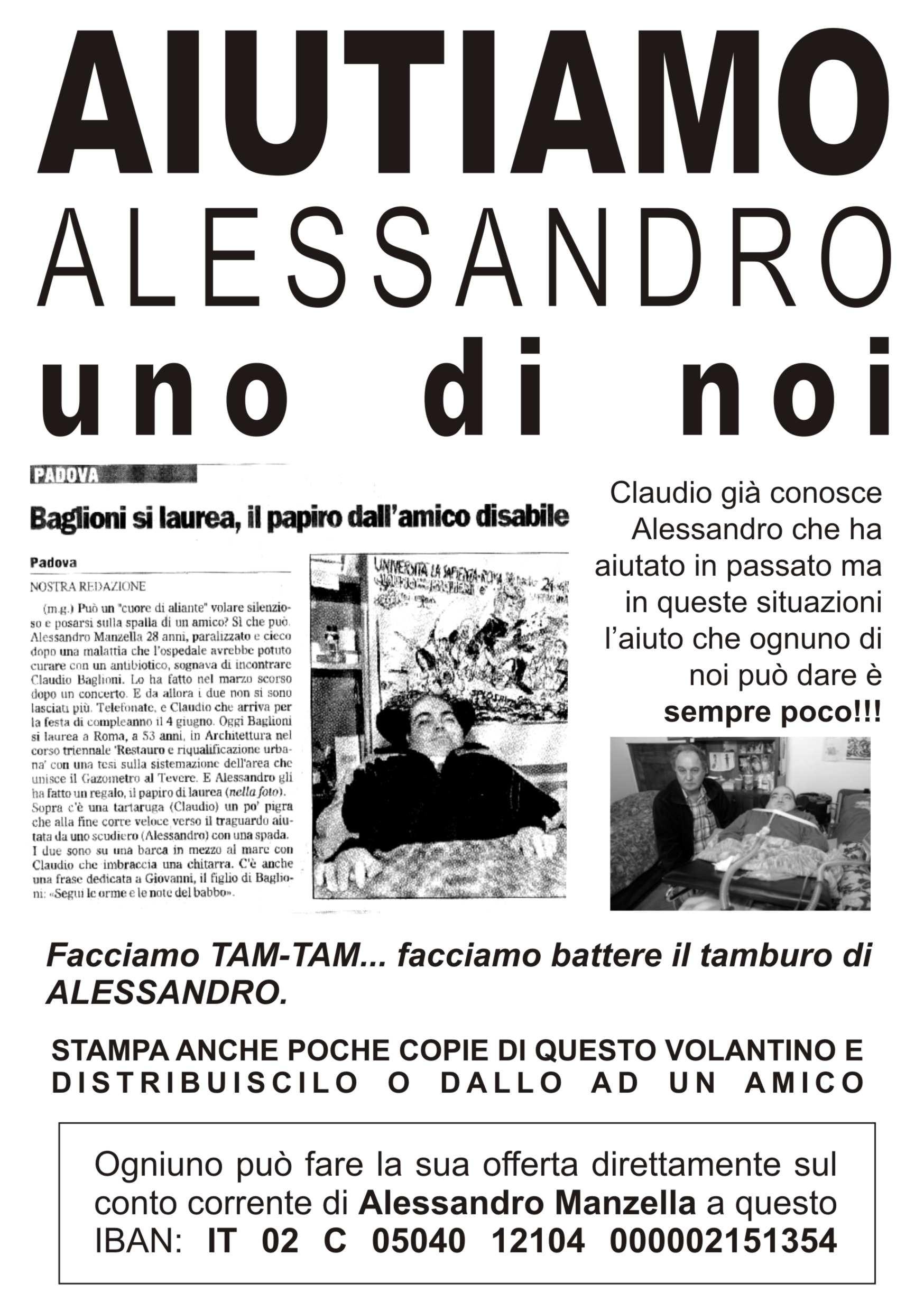 Come la maggior parte di voi sapranno, Alessandro Manzella, è un ragazzo Padovano con gravi problemi fisici molto legato alla musica di Claudio Baglioni e alla sua persona.